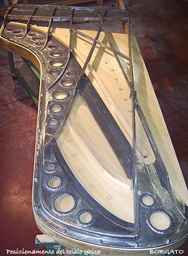 LB: Credo che oggi in Italia, considerare una scuola di altissima formazione per insegnare ai giovani il mestiere di tecnico-costruttore di pianoforti sia doveroso per il nostro paese. Vi sono scuole in Francia, Germania, Svizzera, Giappone e molti altri paesi. Più volte mi sono trovato a sottolineare questo “vuoto” con cariche istituzionali quali sindaci, assessori e direttori di conservatorio vari. L’idea di aprire una scuola piace molto a tutti! Poi, non Le nascondo che quando si inizia a prendere in esame seriamente la questione, tra gli innumerevoli ostacoli burocratici, e sempre più, la mancanza di fondi, il progetto ritorna in un bel cassetto. LB: Il mio pianoforte migliore lo sto ultimando proprio in questi giorni. Si tratta di un nuovo progetto innovativo: un pianoforte da concerto lungo più di metri 3,30 (attualmente il pianoforte più lungo al mondo) che presenterò nell’anno in corso! (è possibile ingrandire tutte le fotografie)